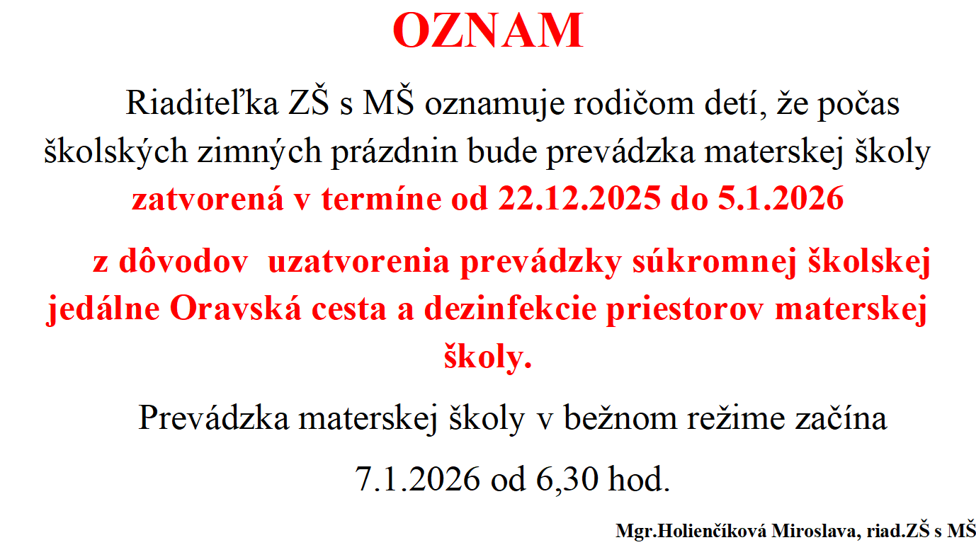 Vzhľadom na aktuálnu úpravu výšky stravy,Vás žiadam o doplatenie finančného príspevku na účet jedálne. Ďakujeme za pochopenie.